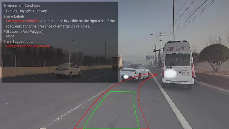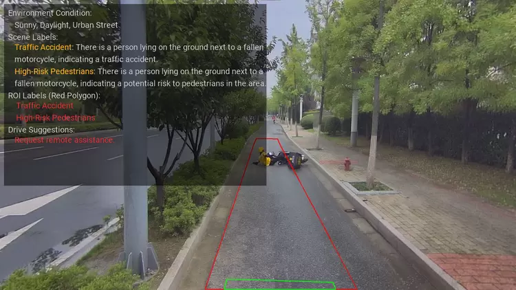长尾场景之所以重要,是因为它们代表了自动驾驶系统必须能够应对的罕见但危险的情况。对于人类驾驶员来说,处理这些边缘情况往往基于直觉和多年的经验积累。对于自动驾驶系统来说,为了在遇到这些罕见情况时仍能安全地操控车辆,需要大量的数据和复杂的算法来模拟人类的决策过程。但由于现实世界复杂多变,算法难以 100% 覆盖全部场景,此时就需要 AI 安全员介入,利用与人类相似的知识与经验理解场景、保证安全。