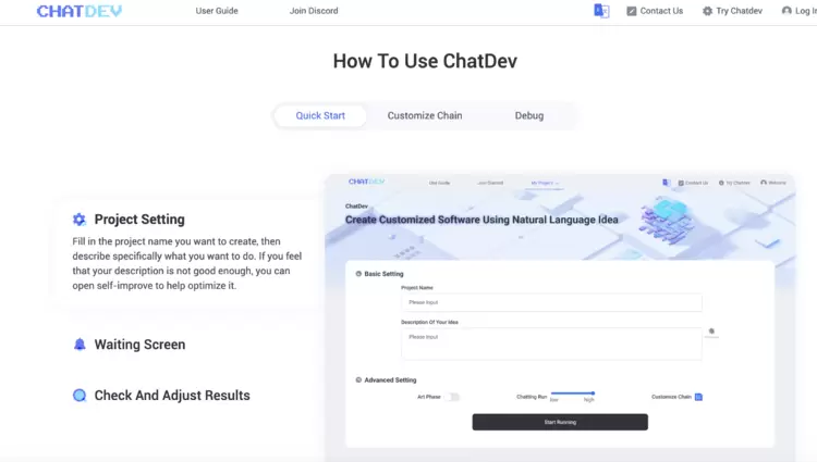 核心优势:AIAgents群体协作开发;低门槛启动(输入项目名+角色设置);高效应用生成。