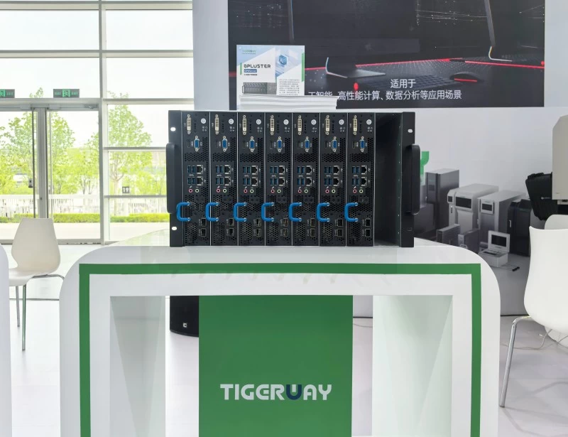 展会现场,威尔创新(TIGERWAY)携自研AI服务器--GPLUSTER-LC首次发布。这是一款6U高密计算服务器,支持混插多种架构GPU、NPU,实现在一台机器内同时独立运行多种业务应用。