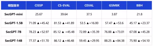 通过多轮数据优化与任务精调,SecGPT已实现多个能力维度的跨越式进展: