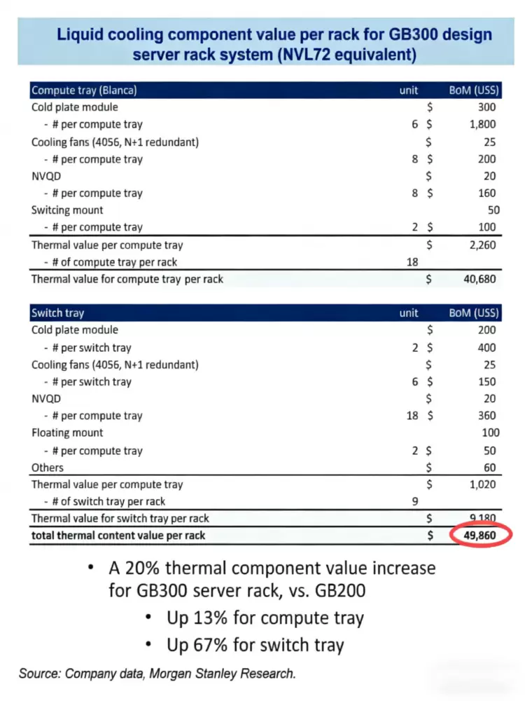 这种“陪跑”式的战略默契,使企业不仅能获得更大的市场份额,同时也有望获得新技术更高市场价值的叠加收益。根据,摩根士丹利发布的报告,英伟达GB300 NVL72机架级AI系统的液冷散热组件价值高达49860美元(约合人民币近36万元),比GB200 NVL72系统高了大约20%,下一代Vera Rubin NVL144平台的散热总价进一步增长17%,达到约55710美元(约合人民币近40万元)。正是在“份额+单价”双提升作用下,根据联想集团最新一期财报,今年7月至9月所处季度,联想集团海神液冷技术收入同比大增154%,在全球绿色算力领域保持领先地位。