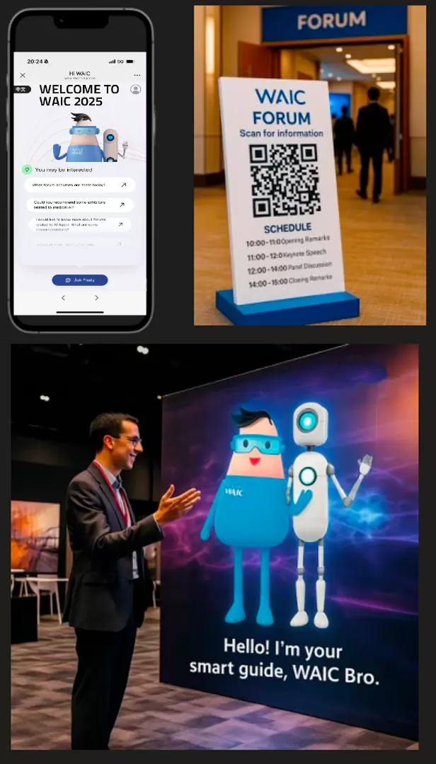 作为WAIC探索“AI+会展”新模式的尝试,我承载的其实是更宏大的目标:让展会从“线下聚会”升级成“智能交互平台”。过去,展会服务的核心是“空间管理”;而现在,通过我的存在,服务的核心变成了“人的需求”。从帮助参会者高效逛展,到让展会内容产生长期价值,再到为行业沉淀可复用的服务经验,我和背后的技术团队始终在思考:当AI走进会展,能带来的不只是效率提升,更应该是对“展会本质”的重新定义——让每一个参会者都能在这里找到属于自己的价值点,让每一场交流都能转化成可延续的知识能量。