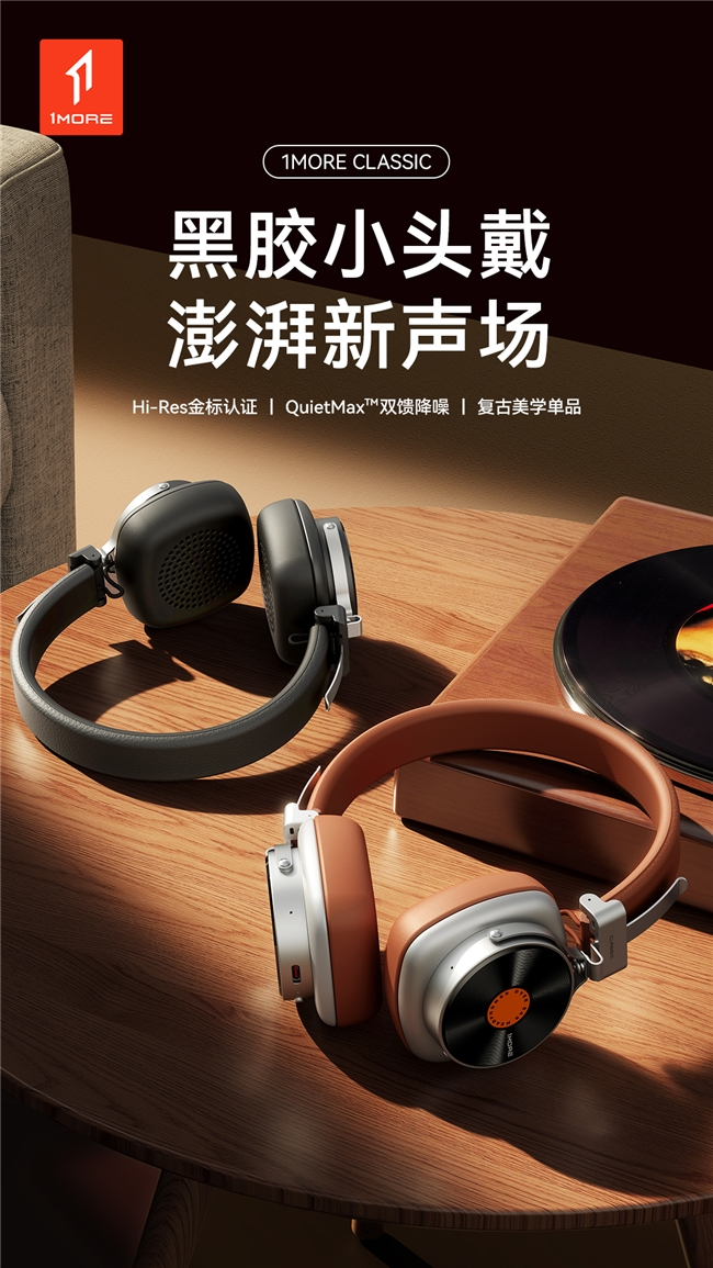 凭借对音频技术的深耕与潮流美学的敏锐洞察,专业音频品牌 1MORE 万魔再度发力,推出兼具复古质感与硬核性能的新品 ——1MORE 黑胶复古头戴耳机 HQ36。这款融合了经典设计与现代科技的潮搭单品,不仅以黑胶唱片为灵感打造吸睛造型,更搭载 Hi-Res Wireless 金标认证音质与深度降噪技术,为音乐爱好者带来好看与「声」俱来的沉浸式聆听体验。