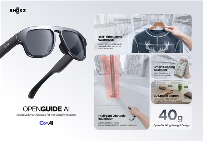 作为韶音可穿戴生态的关键延伸,OpenGuide AI与OpenVision分别聚焦于视觉辅助与运动体验两大场景,诠释了韶音“开放式智能”的产品理念。