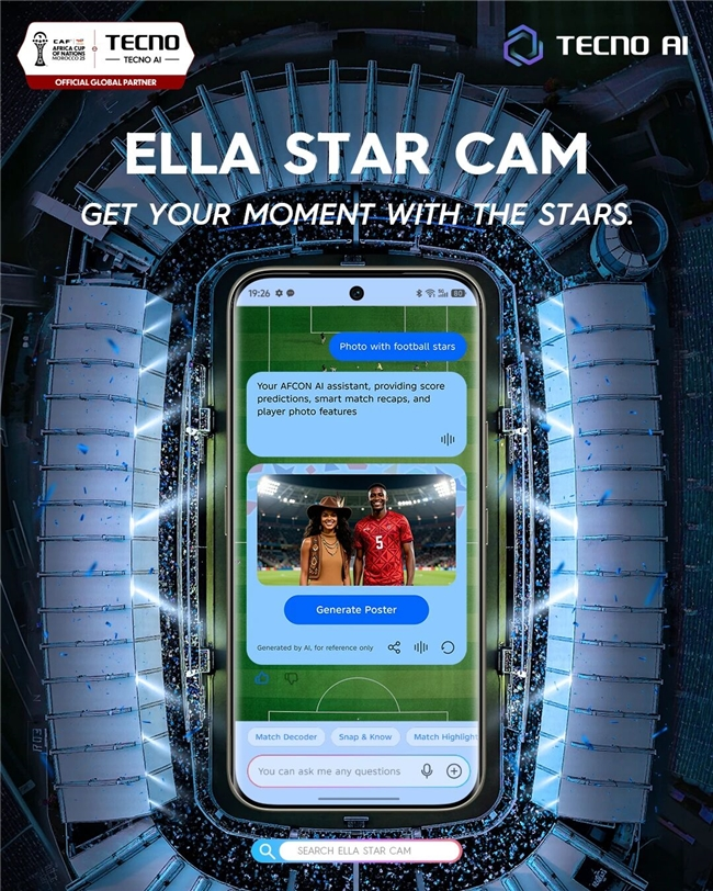 2025年的非洲杯不仅是足球的狂欢,也成为了TECNO展示其前沿AI技术本地化应用的绝佳场景。赛事期间,TECNO围绕智能助手Ella为核心,为球迷打造了一系列创新AI功能,将手机变为智慧观赛伴侣: Ella Match Decoder(AI战术大师),提供实时战术分析与智慧洞察;Ella Daily Highlight(AI赛事助手),自动生成个性化精彩瞬间集锦;Ella Star Cam(球星合影),拉近球迷与球星的距离。这些功能紧密契合观赛、社交等真实场景,切实提升了用户体验。