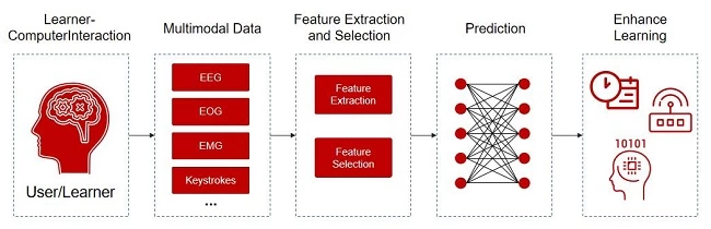 在当今信息时代,学习技术的发展已经成为教育领域的重要议题。传统的学习方法和教学模式面临着许多挑战,例如学习者的个体差异、学习效果的评估和个性化学习支持的需求。为了解决这些问题,研究者和教育机构开始关注学习技术的发展,并尝试利用计算机科学、数据分析和人工智能等技术手段来改进学习过程和学习效果。随着计算机技术的发展和脑机接口技术的成熟,使用多模态数据来理解学习过程和改进学习技术变得越来越重要。目前科学的学习技术设计主要依靠点击流数据进行建模和预测学习行为。