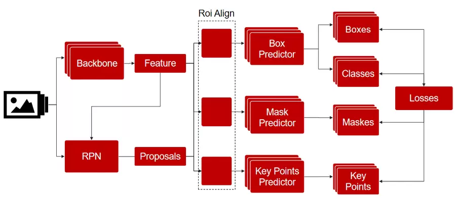 模型训练:使用准备好的数据集对Mask R-CNN模型进行训练。训练的目标是使模型能够准确地预测目标的边界框、类别、掩码和关键点。