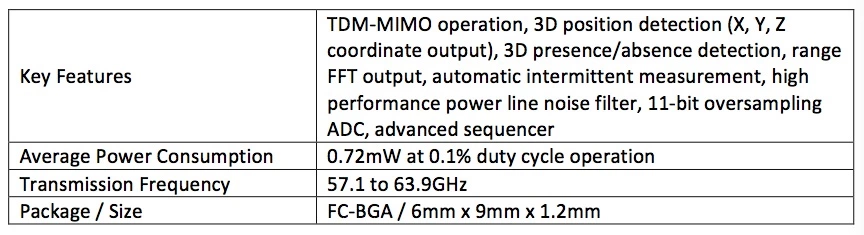新型SC1260系列60GHz毫米波雷达传感器采用6.8GHz (57.1~63.9GHz) 带宽,并通过TDM-MIMO处理技术扩展接收天线数量,实现高精度3D(包括1D、2D)传感,适用于利用单颗传感器精准检测汽车后排安全座椅上的儿童或多名成人乘客。