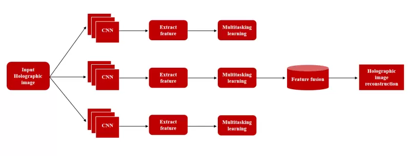 WIMI微美全息研究的基于深度多分支神经网络的数字全息图重建技术,通过训练深度多分支神经网络,可以学习和提取全息图像的特征,然后根据这些特征来重建全息图像。相比传统方法,基于深度多分支神经网络的数字全息图重建技术具有更好的重建质量、更高的计算效率和更强的泛化能力。