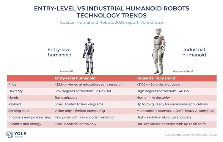 近日,国际市场研究与战略咨询机构Yole Group发布《2026年人形机器人市场报告》(Humanoid Robots 2026:Market and Technology Trends Report,以下简称“报告”)。报告指出,工业场景作为人形机器人爆发的先行领域,采用多传感器融合方案成为其应用性能升级的关键。报告还选取RoboSense“机器人之眼”Active Camera系列产品作为代表案例,展示了融合感知方案的显著优势以及在人形机器人领域的强大应用潜能。