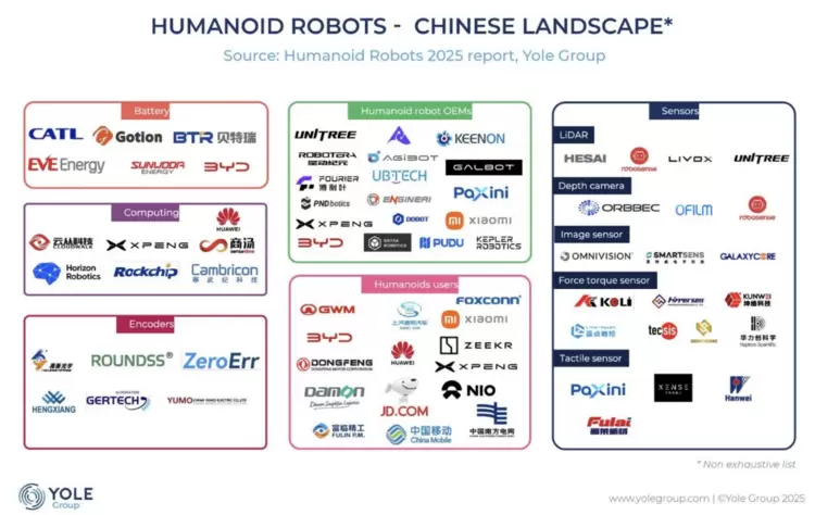 报告选取RoboSense“机器人之眼”作为技术趋势代表案例。Yole Group认为,与多个独立感知模块相比,AC1硬件级集成的激光雷达+RGB相机+IMU的一体化感知方案,不仅简化了系统集成,也在软件适配、布线等方面更加简洁高效。