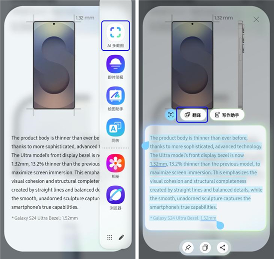 进入工作或学习的状态后,三星Galaxy S25系列通过AI多截图功能提高效率。当你浏览外文资料、课堂课件或研究报告,只需圈选关键信息,AI多截图便会自动识别文字内容、生成摘要或即时翻译。无需反复切换应用,无需筛选段落,也无需复制粘贴,大量零碎操作被压缩成一次直觉式动作。